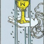 Se pensarmos no cálice como o Graal, essa carta pode simbolizar um objetivo, algo pelo qual estamos nos esforçando, mas que ainda parece distante — um farol que nos guia no início de uma jornada espiritual ou emocional.