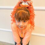 Inspirado na personagem Ansiedade, de ‘Divertida Mente 2’, esse penteado é pura energia! O coque alto recebe uma explosão de fitilhos laranjas e uma miniatura divertida no topo, criando um visual vibrante e cheio de personalidade.