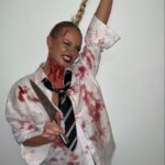 Para um resultado ainda mais realista, capriche na maquiagem ensaguentada, garantindo que o look fique completo e impactante.